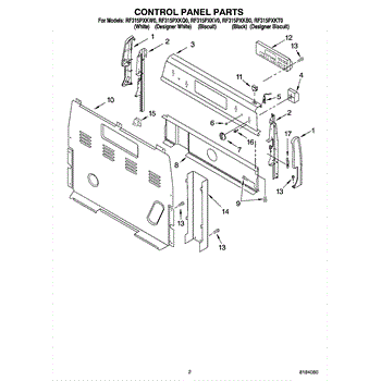 Parts for Whirlpool RF315PXKB0: 02 - Control Panel Parts