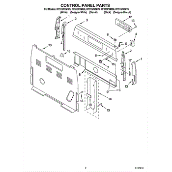 Parts for Whirlpool RF315PXMB0: 02 - Control Panel Parts