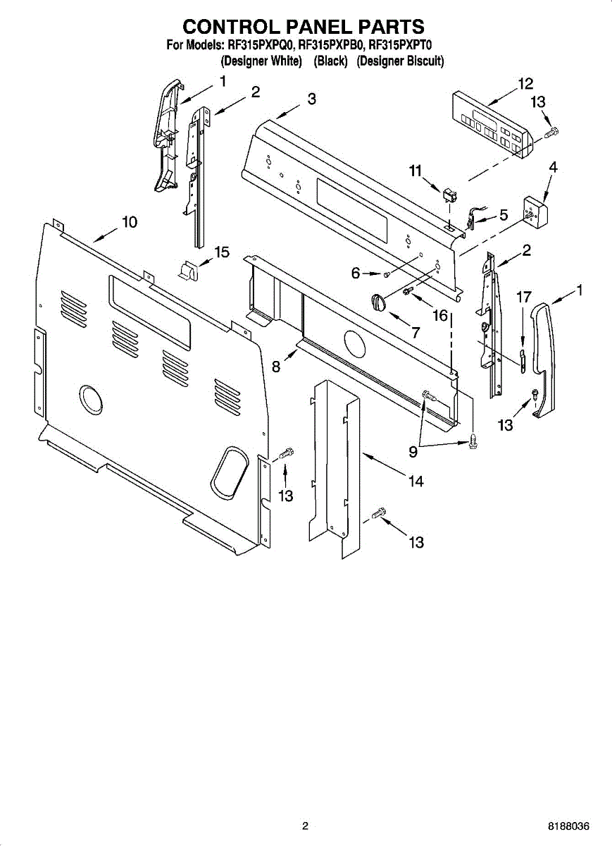 Parts for Whirlpool RF315PXPT0: 02 - Control Panel Parts