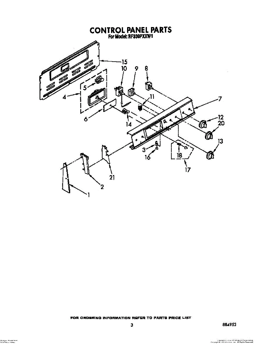 Parts for Whirlpool RF330PXXW1: 03 - Control Panel Parts