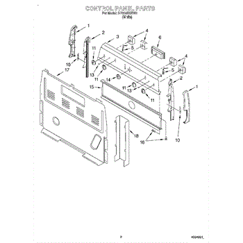 This upper electrical cover protects and conceals the appliance's control box and wiring, helping keep electrical components safe from dust and accidental contact. It restores a finished appearance and supports secure mounting of the console area. What it does: