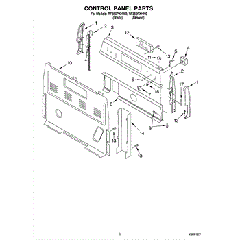 This upper electrical cover protects and conceals the appliance's control box and wiring, helping keep electrical components safe from dust and accidental contact. It restores a finished appearance and supports secure mounting of the console area. What it does: