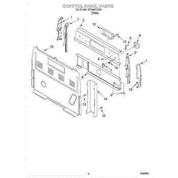 This upper electrical cover protects and conceals the appliance's control box and wiring, helping keep electrical components safe from dust and accidental contact. It restores a finished appearance and supports secure mounting of the console area. What it does: