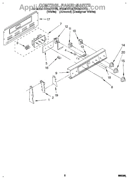 Parts for Whirlpool RF364PXYQ3: 02 - Control Panel Parts
