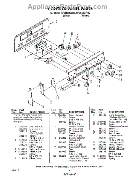 Parts for Whirlpool RF365BXWN0: 04 - Control Panel Parts
