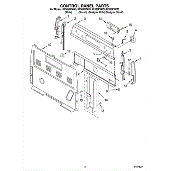 Parts for Whirlpool RF365PXMV0: 02 - Control Panel Parts