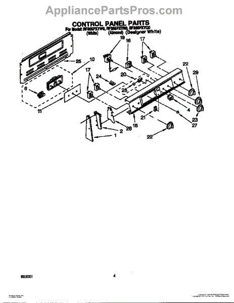 Parts for Whirlpool RF365PXYN0: 03 - Control Panel Parts