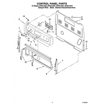 Parts for Whirlpool RF367LXSY1: 02 - Control Panel Parts