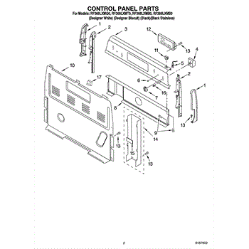 This white control panel is the front fascia for select ranges. It mounts to the console/backguard and supports the oven control and switches, restoring a clean, secure control area when the original panel is cracked, warped, or discolored.