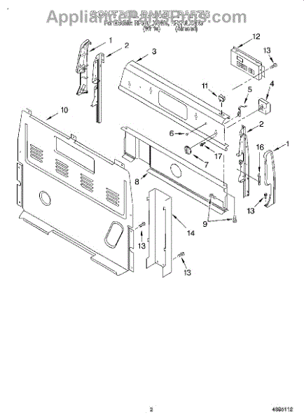 This upper electrical cover protects and conceals the appliance's control box and wiring, helping keep electrical components safe from dust and accidental contact. It restores a finished appearance and supports secure mounting of the console area. What it does: