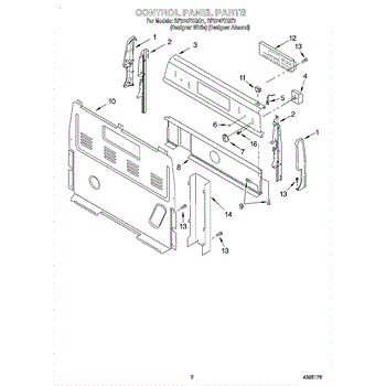 This upper electrical cover protects and conceals the appliance's control box and wiring, helping keep electrical components safe from dust and accidental contact. It restores a finished appearance and supports secure mounting of the console area. What it does: