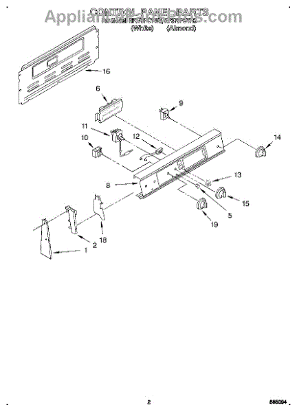 Parts for Whirlpool RF375PCYN3: 02 - Control Panel Parts