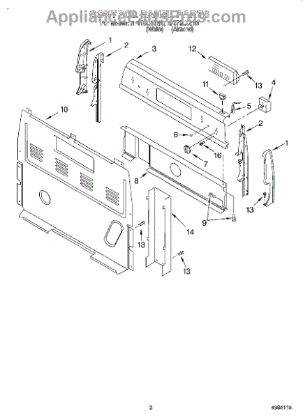 This upper electrical cover protects and conceals the appliance's control box and wiring, helping keep electrical components safe from dust and accidental contact. It restores a finished appearance and supports secure mounting of the console area. What it does:
