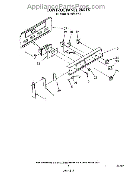 Parts for Whirlpool RF385PCWW2: 03 - Control Panel Parts