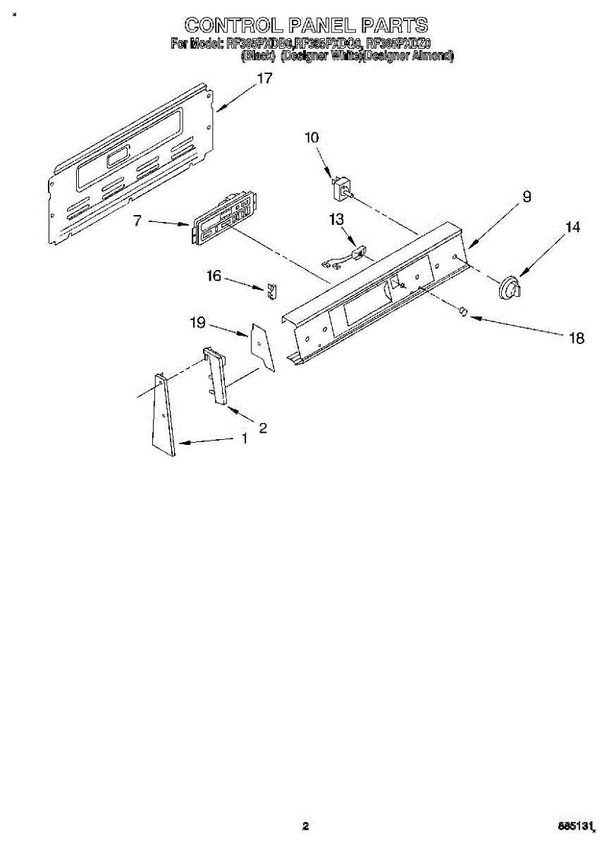 Parts for Whirlpool RF385PXDZ0: 02 - Control Panel Parts