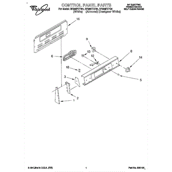 Parts for Whirlpool RF385PXYW4: 01 - Control Panel Parts
