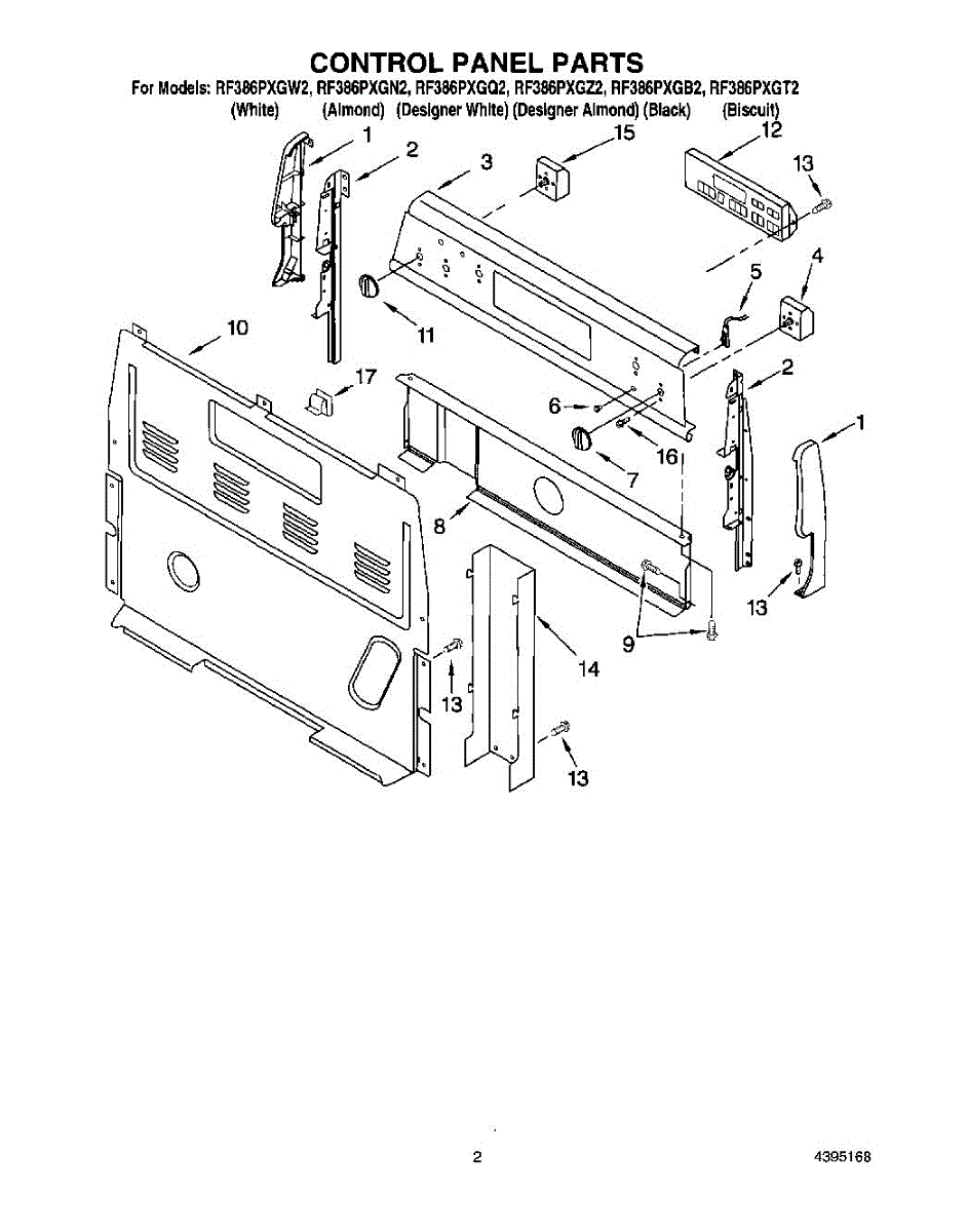 Parts for Whirlpool RF386PXGB2: 02 - Control Panel Parts