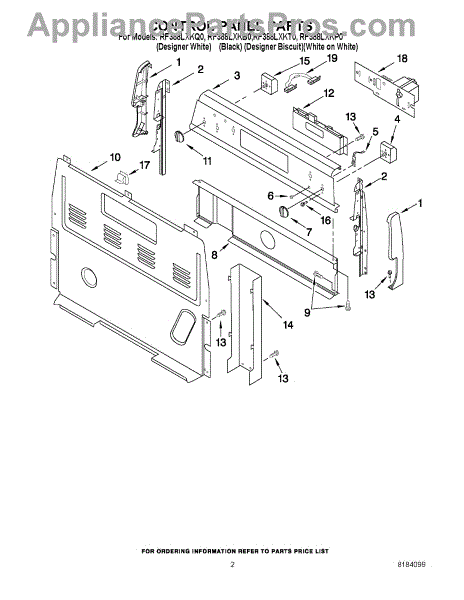 Parts for Whirlpool RF388LXKB0: 02 - Control Panel Parts