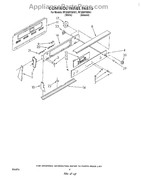 Parts for Whirlpool RF390PXWN1: 03 - Control Panel Parts