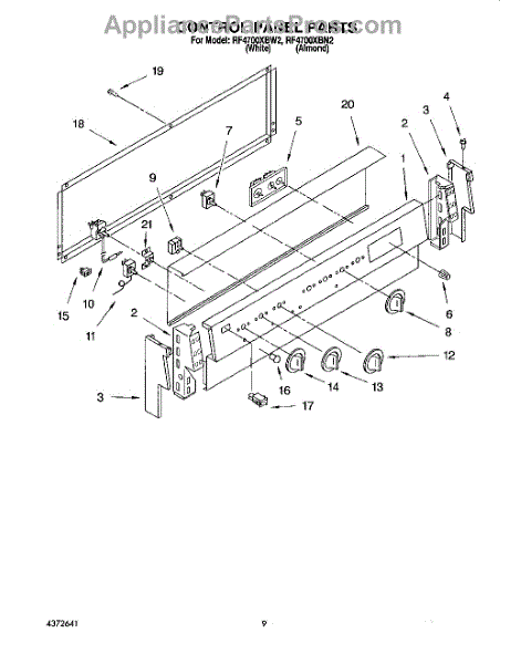 Parts for Whirlpool RF4700XBW2: 05 - Control Panel, Lit / Optional Parts