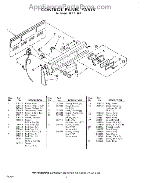 Parts for Whirlpool RFE313PP: 04 - Control Panel Parts