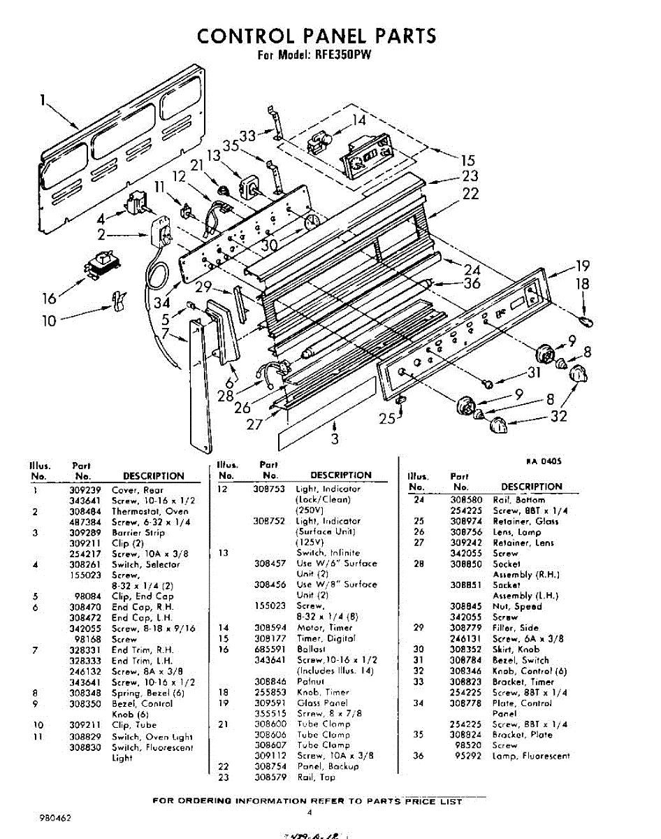 Parts for Whirlpool RFE350PW: 04 - Control Panel Parts