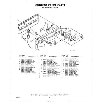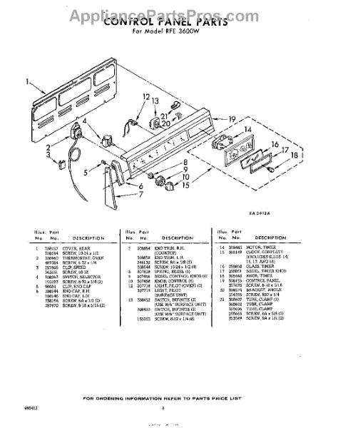 Parts for Whirlpool RFE3600W: 04 - Control Panel Parts