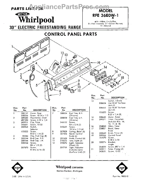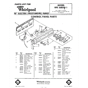 Parts for Whirlpool RFE36E0W1: 01 - Control Panel Parts
