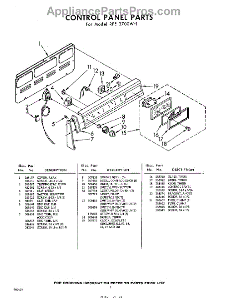 Parts for Whirlpool RFE3700W1: 04 - Control Panel Parts