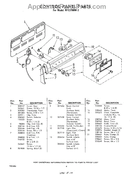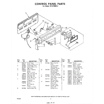 Parts for Whirlpool RFE3700W2: 04 - Control Panel Parts