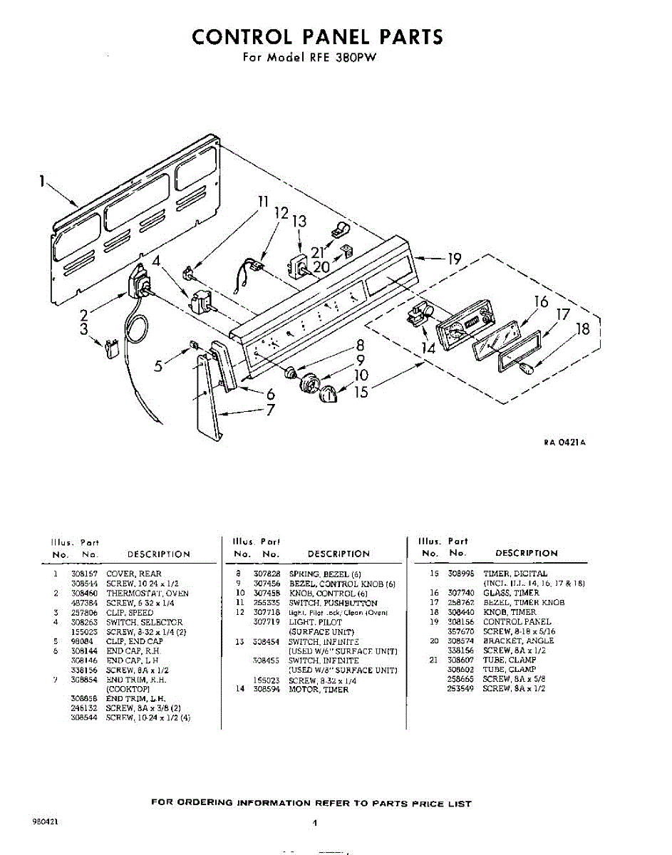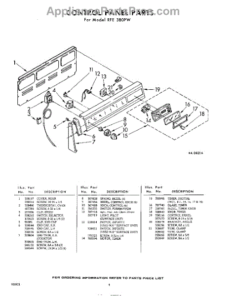 Parts for Whirlpool RFE380PW: 04 - Control Panel Parts