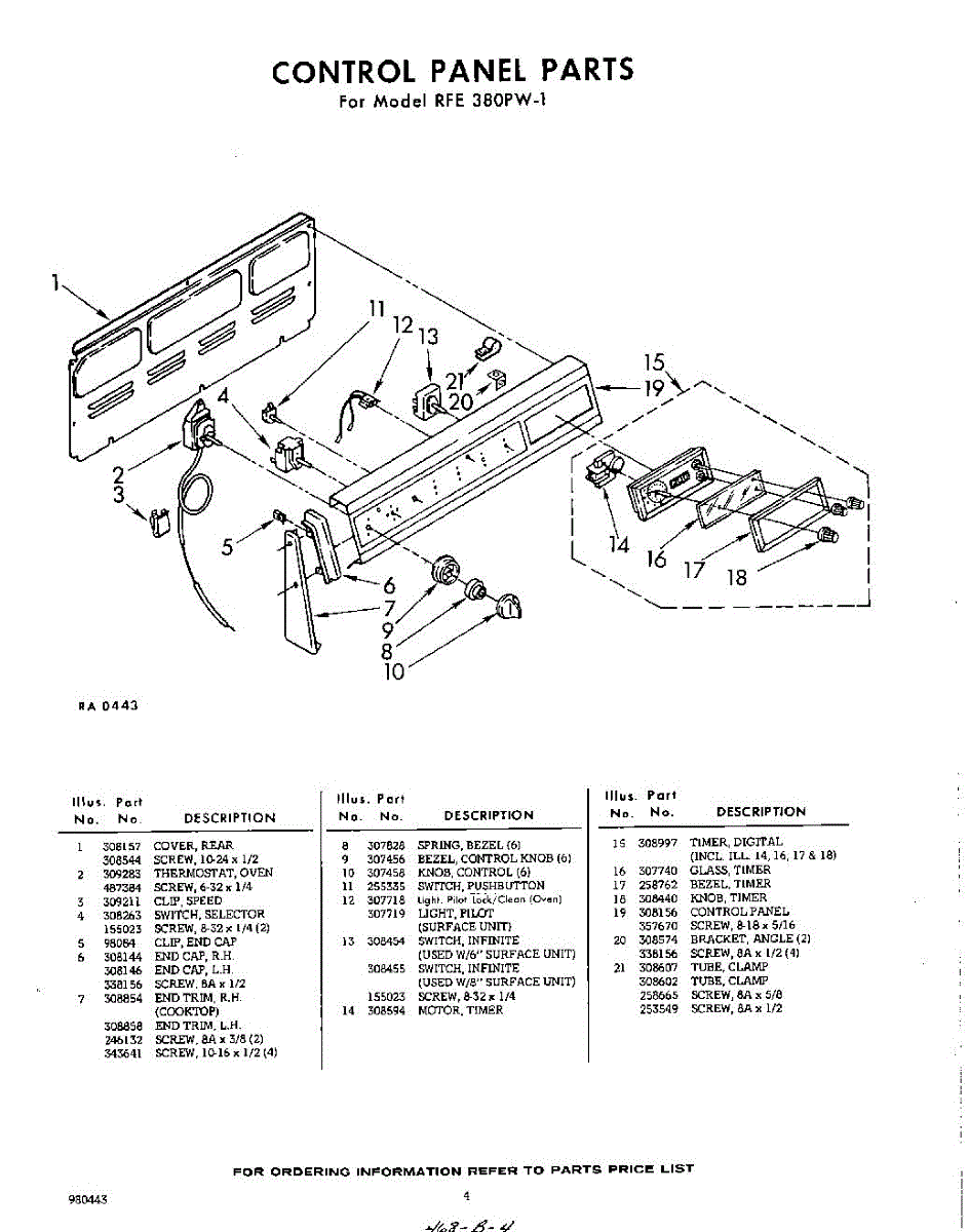 Parts for Whirlpool RFE380PW1: 04 - Control Panel Parts