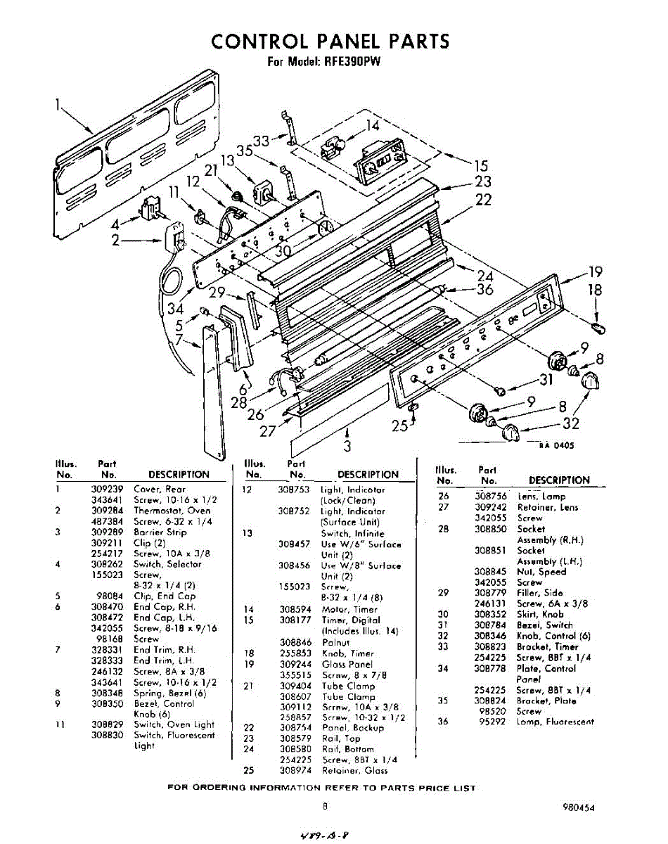 Parts for Whirlpool RFE390PW: 08 - Control Panel Parts