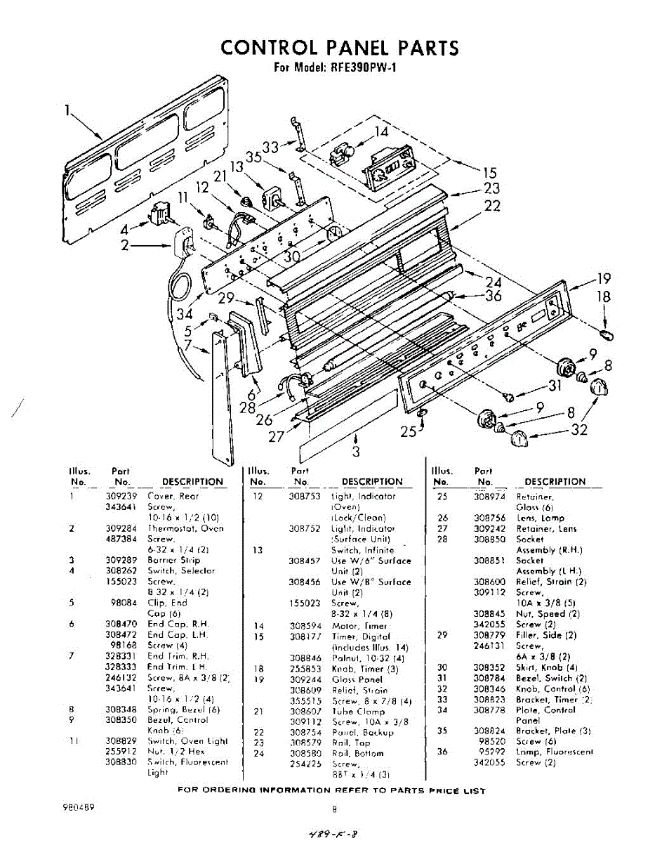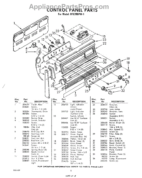 Parts for Whirlpool RFE390PW1: 08 - Control Panel Parts