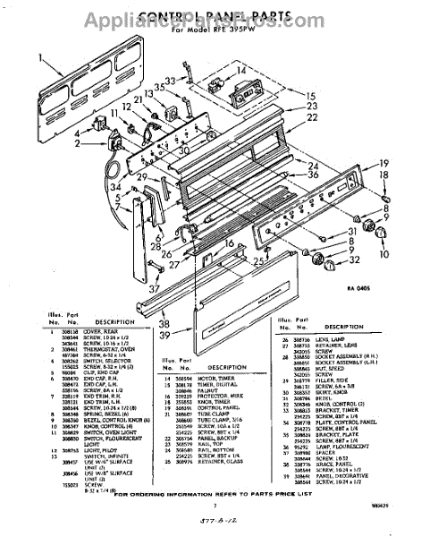 Parts for Whirlpool RFE395PW: 07 - Control Panel Parts