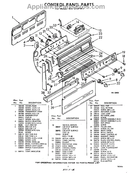Parts for Whirlpool RFE395PW1: 07 - Control Panel Parts