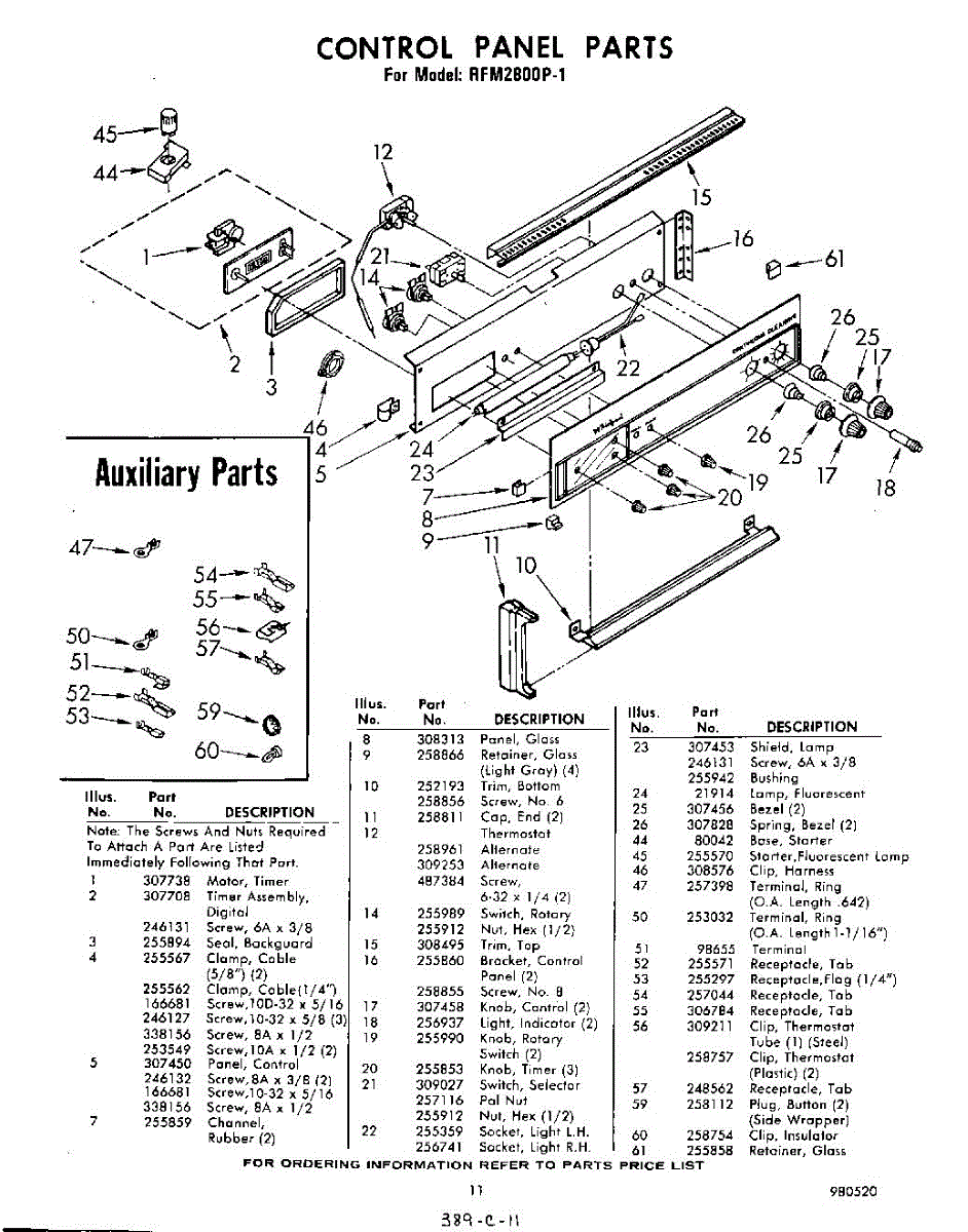Parts for Whirlpool RFM2800P1: 11 - Control Panel Parts