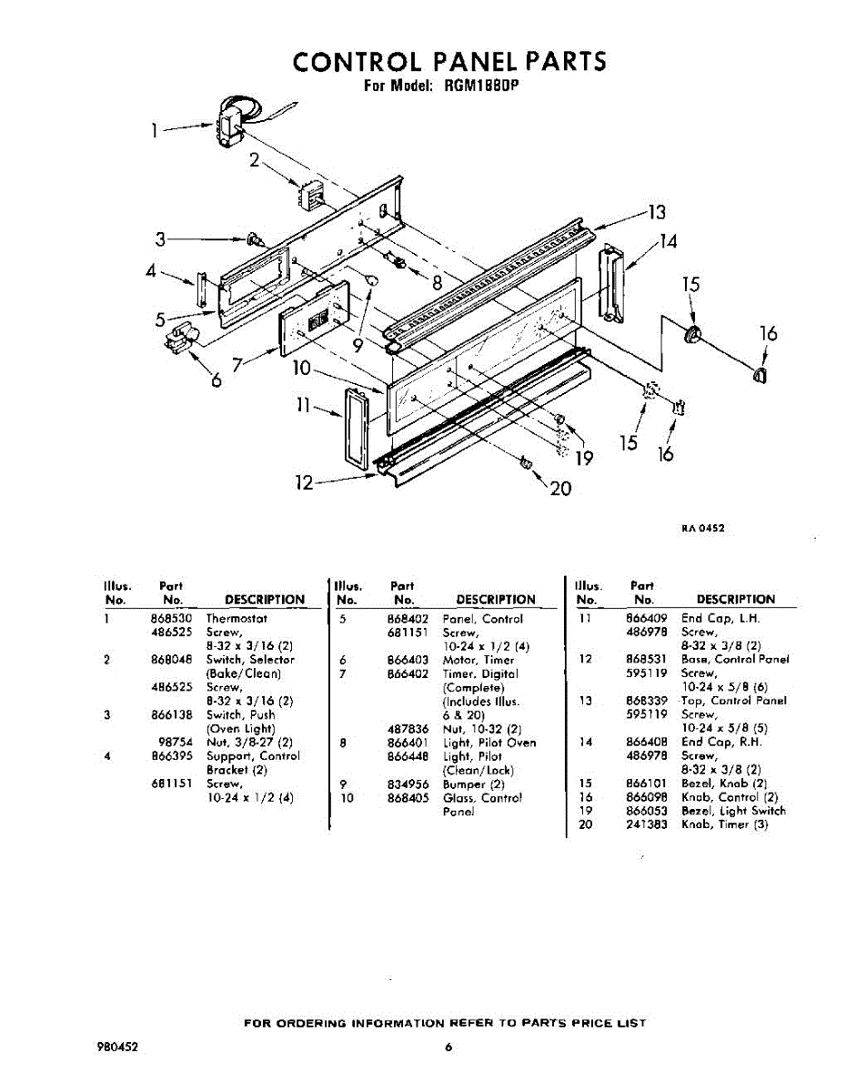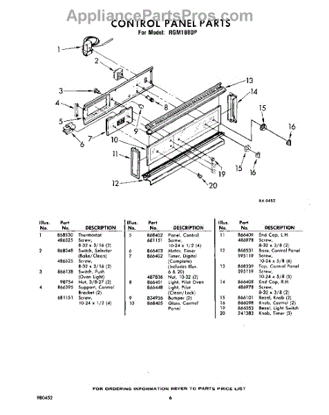 Parts for Whirlpool RGM1880P: 06 - Control Panel Parts