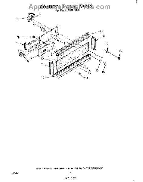 Parts for Whirlpool RHM1870P: 04 - Control Panel Parts