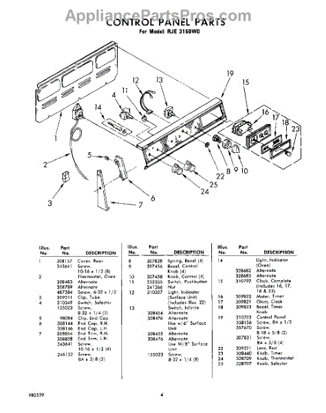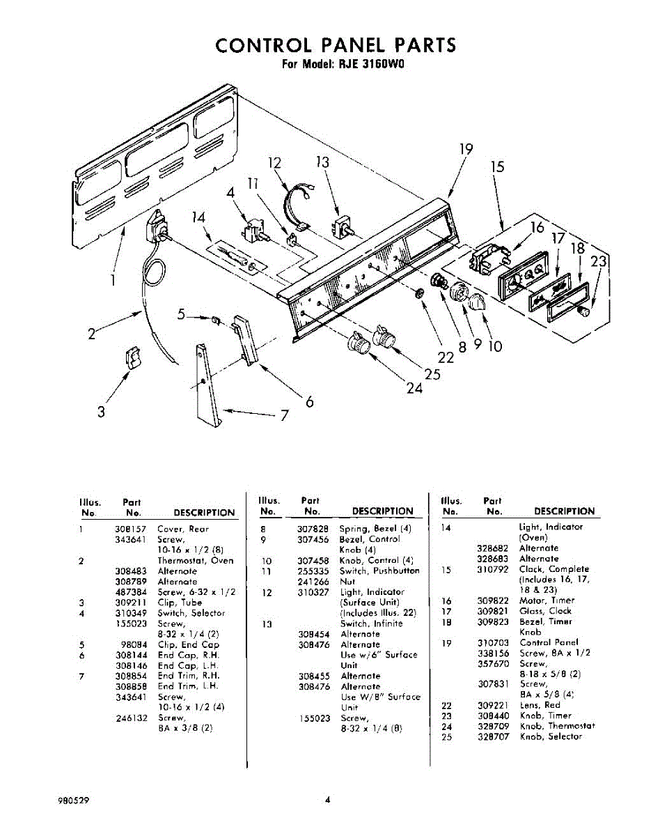 Parts for Whirlpool RJE3160W0: 04 - Control Panel Parts