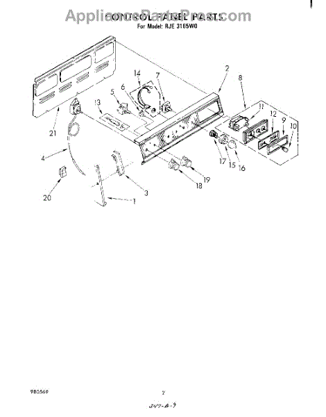 Parts for Whirlpool RJE3165W0: 02 - Control Panel Parts