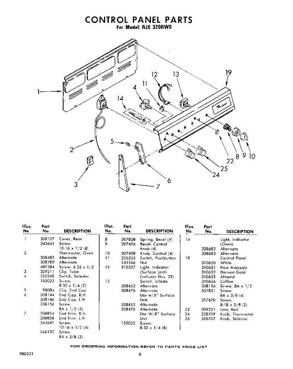 Parts for Whirlpool RJE320BW0: 06 - Control Panel Parts