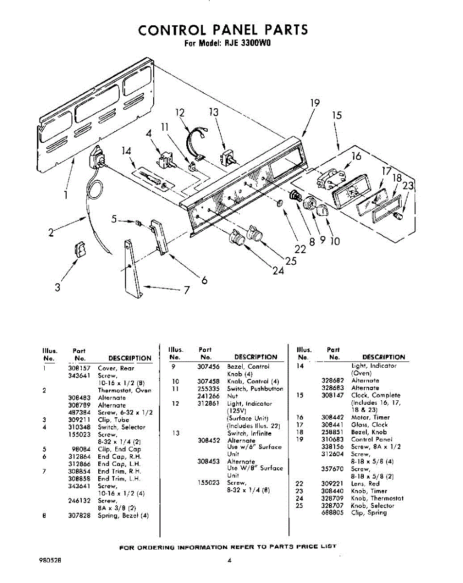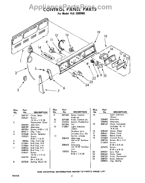 Parts for Whirlpool RJE3300W0: 04 - Control Panel Parts