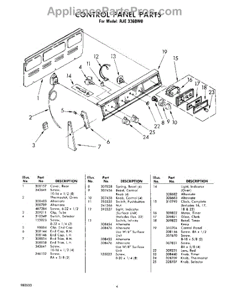 Parts for Whirlpool RJE3360W0: 04 - Control Panel Parts