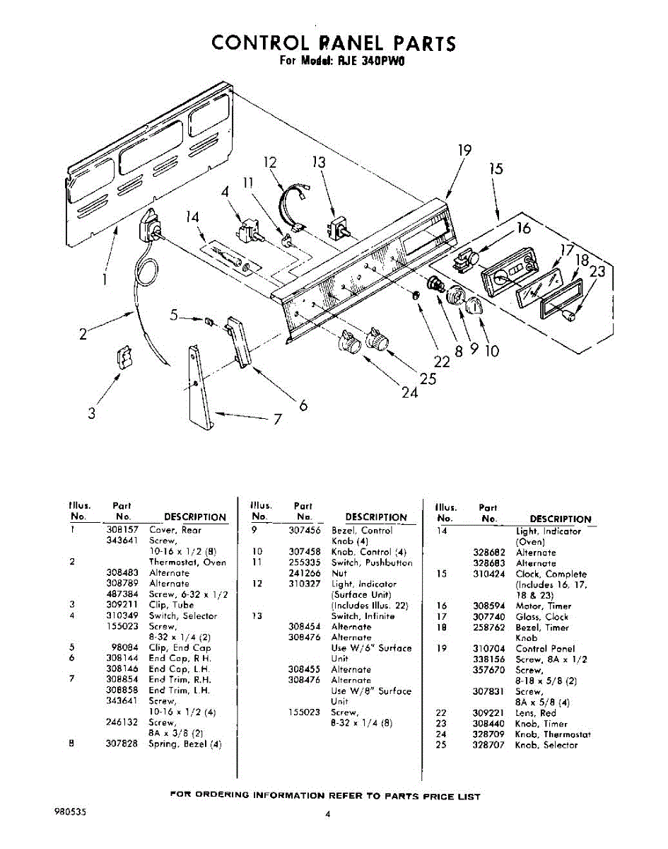 Parts for Whirlpool RJE340PW0: 04 - Control Panel Parts