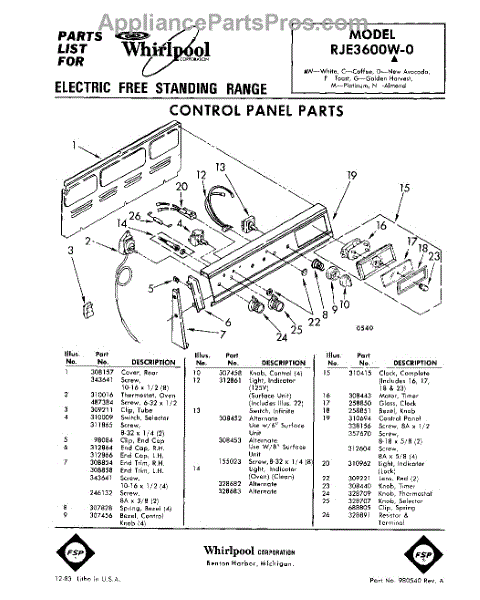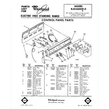 Parts for Whirlpool RJE3600W0: 01 - Control Panel Parts