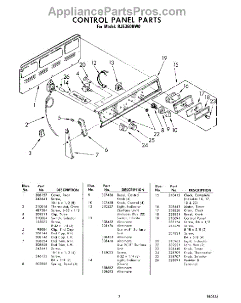 Parts for Whirlpool RJE360BW0: 03 - Control Panel Parts