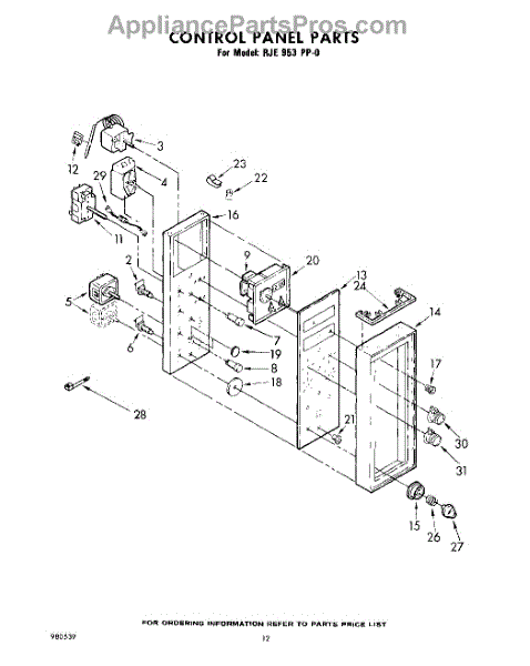 Parts for Whirlpool RJE953PP0: 12 - Control Panel Parts