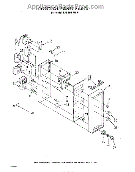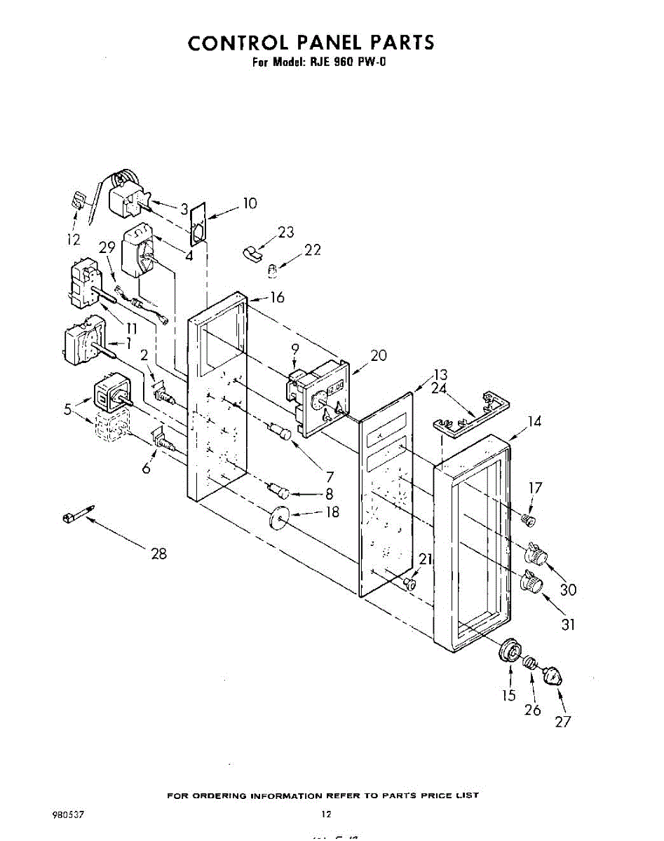 Parts for Whirlpool RJE960PW0: 12 - Control Panel Parts