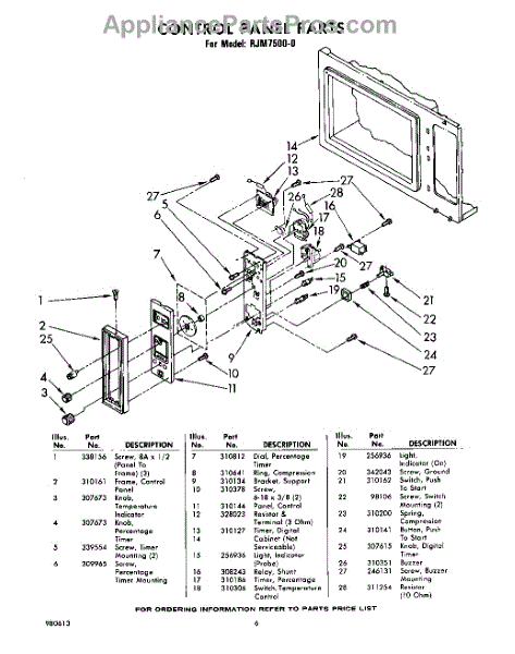 Parts for Whirlpool RJM75000: 06 - Control Panel Parts